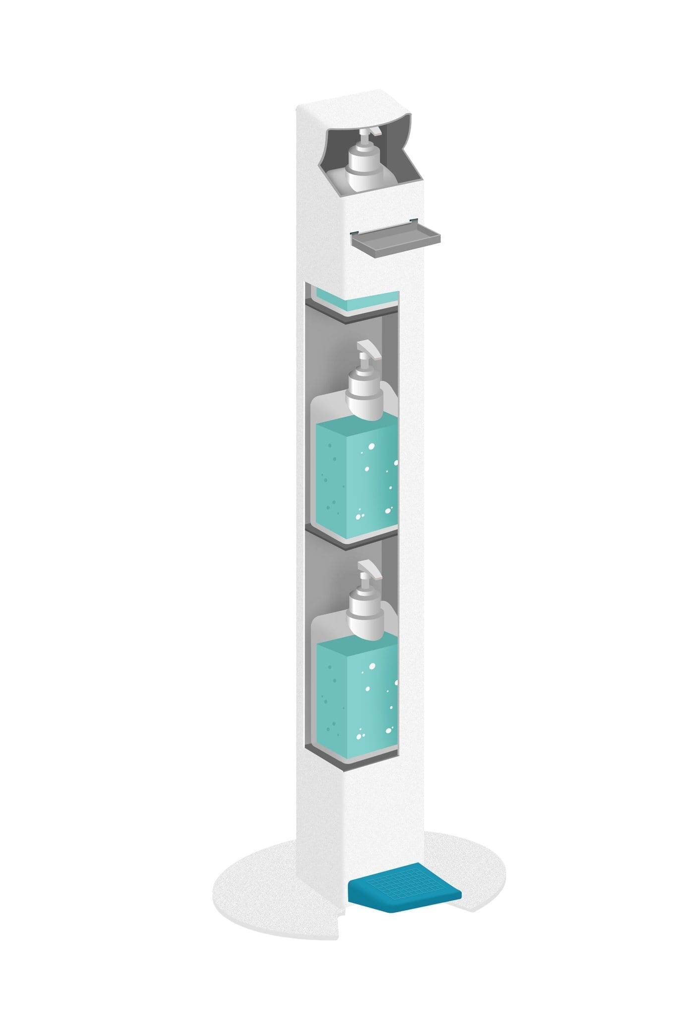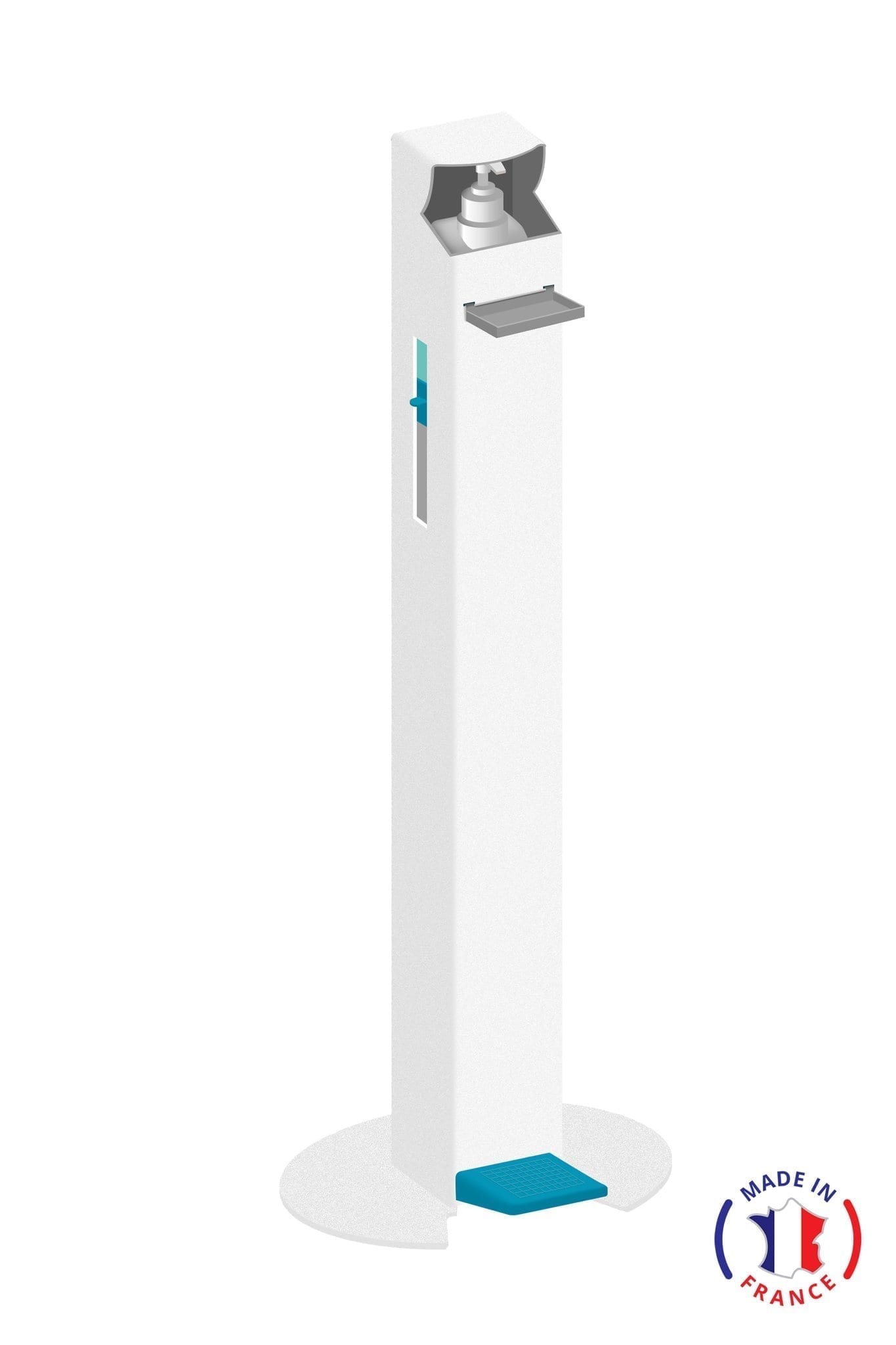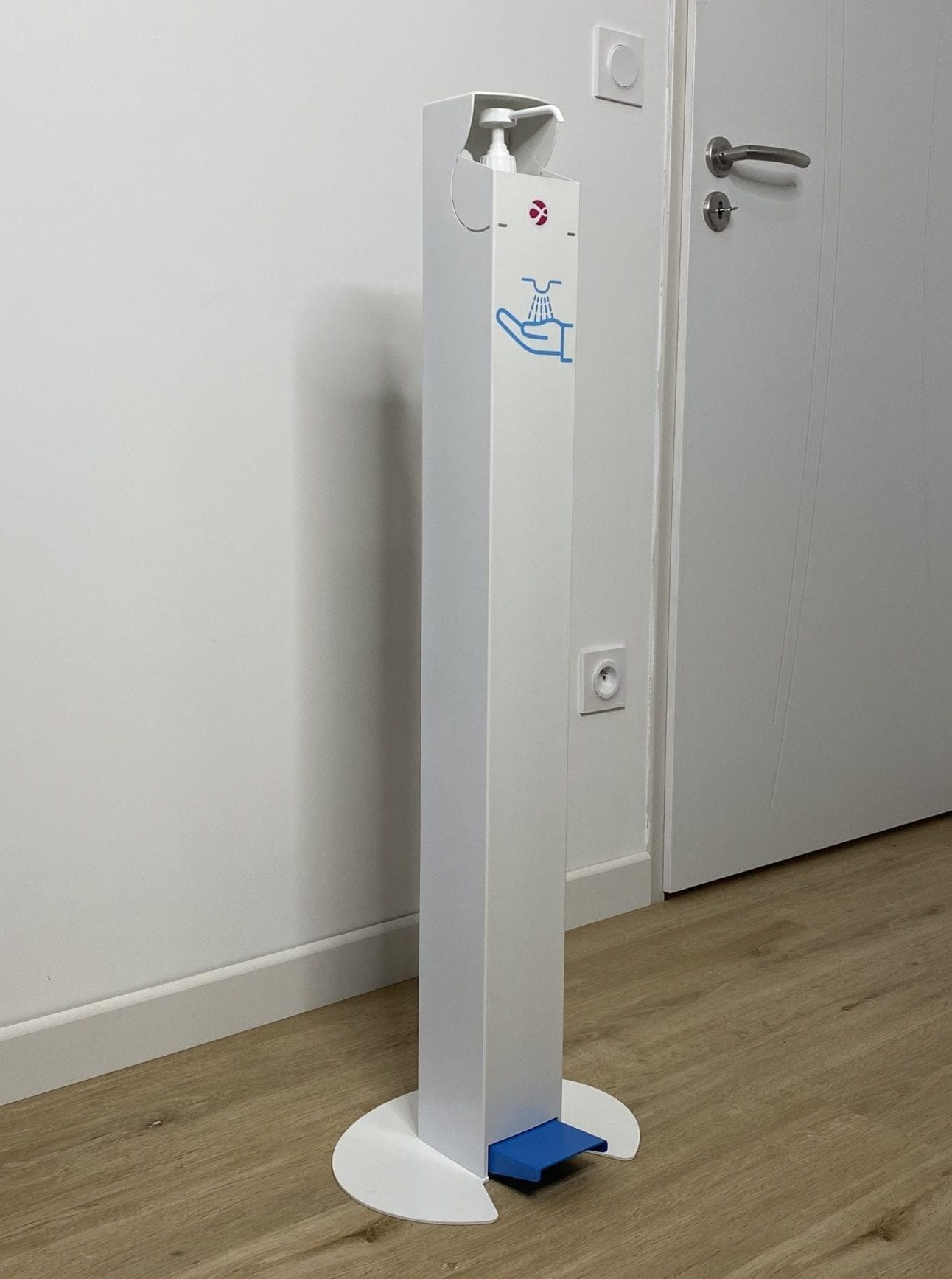 Elle s’actionne en appuyant sur la pédale pour délivrer la dose de solution.