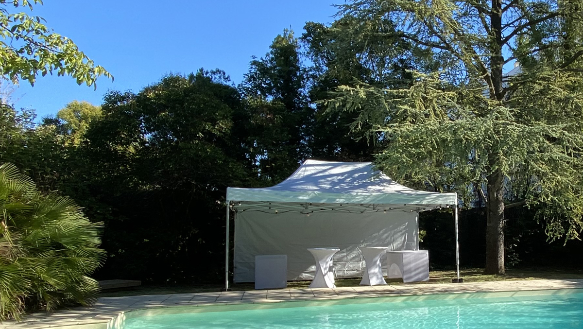 Tente pliante de 6m x 4m se monte en moins de 2 min. Utile pour toutes vos réceptions, elle vous protégera autant du soleil que de la pluie.